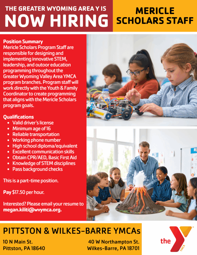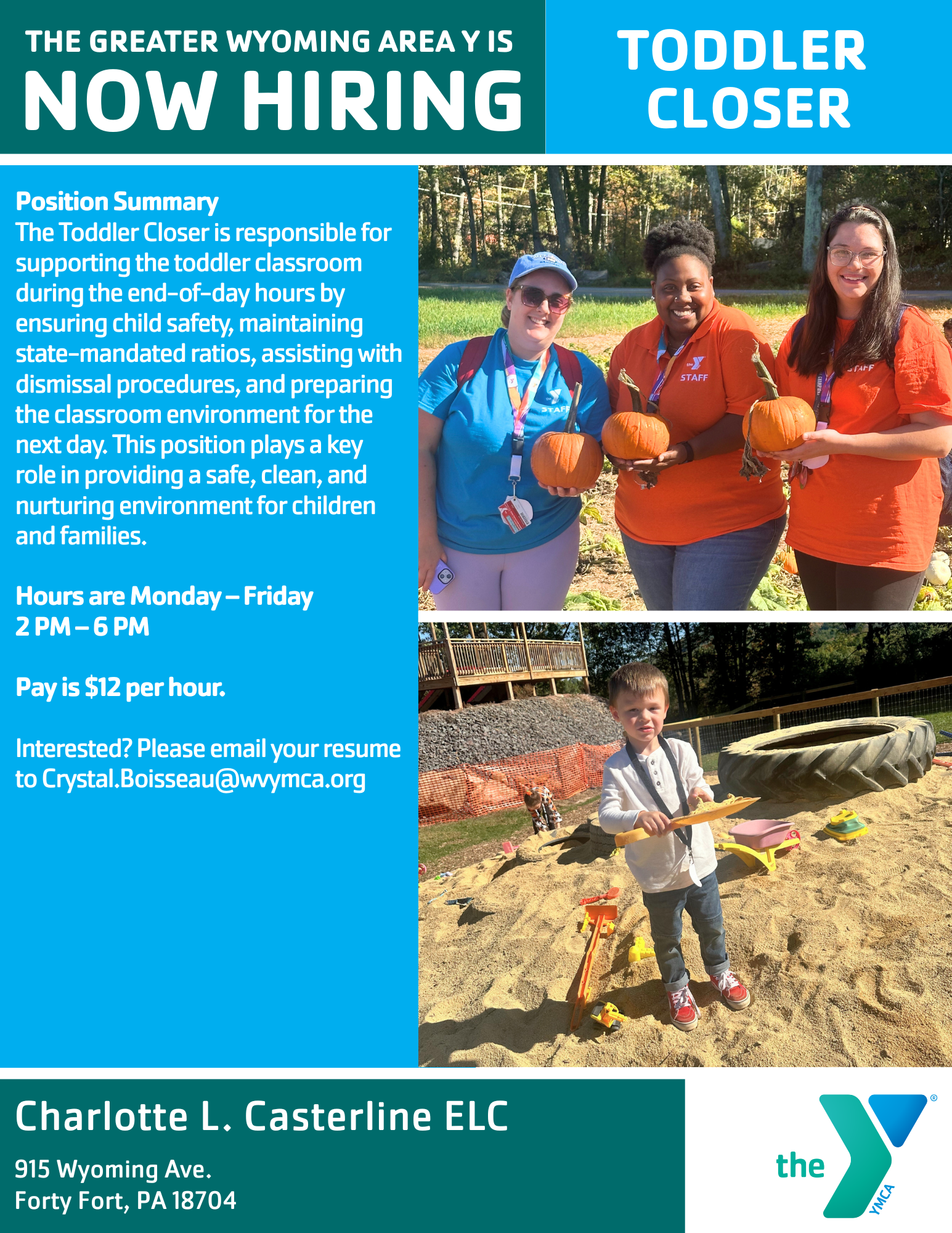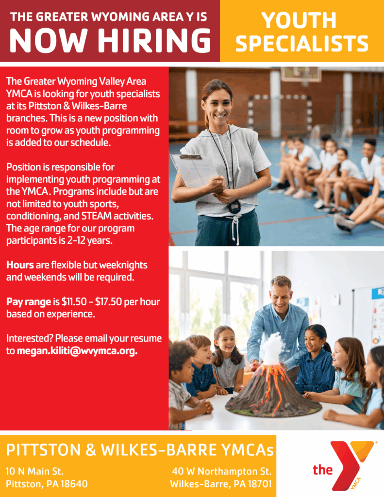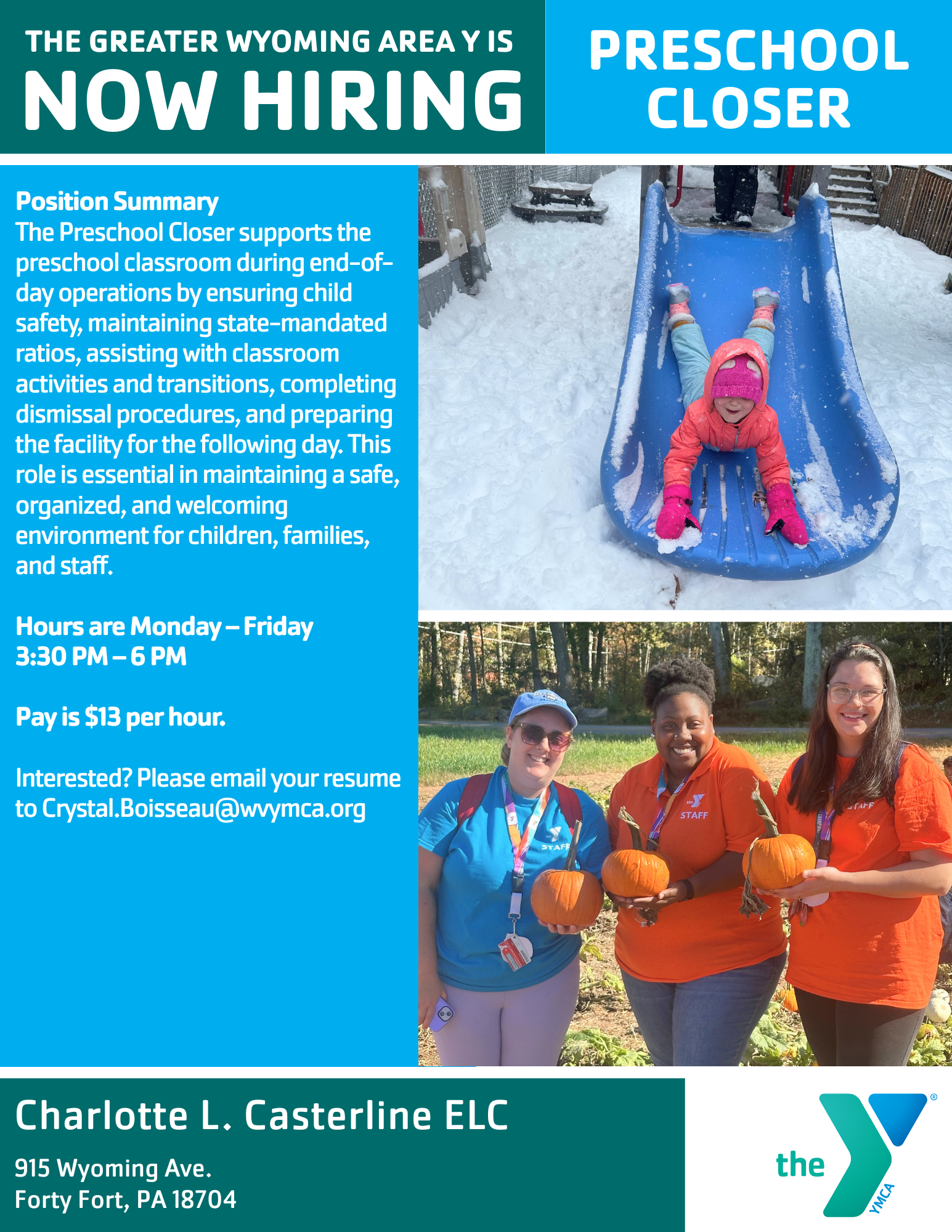 Pre-K Counts Assistant Teacher, part-time 27.5 hours p/w, opportunities at WB YMCA and Casterline Child Care Center in Forty Fort